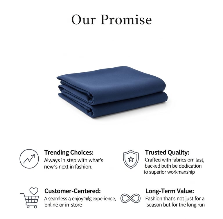 From the latest trending outfits to timeless essentials, our collections are carefully curated to ensure that every piece reflects elegance, durability, and the spirit of contemporary living. Every stitch carries our promise: style that looks fresh today and feels right for years to come.
